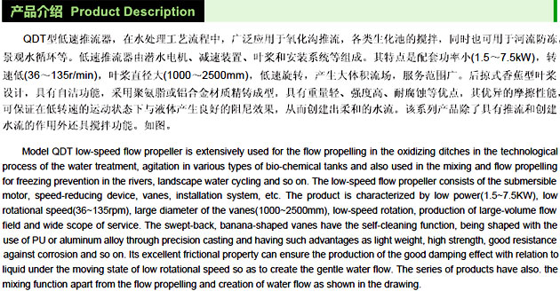 QJB型潜水搅拌机作为水处理工艺中的关键设备之一,在水处理工艺流程中,可实现生化过程中固液二相流和固液气三相流的均质,流动的工艺要求。它由潜水机叶轮和安装系统等组成。潜水搅拌机为直连式结构。他于传统的大功率电机通过减速机降速相比,具有结构紧凑,能耗低,便于维护和保养等有点。叶轮经过精铸或冲压成型,精度高,推力打,流线性造型简洁美观。该系列产品适用于需要固液搅拌,混合的场所。结构简图如下:
